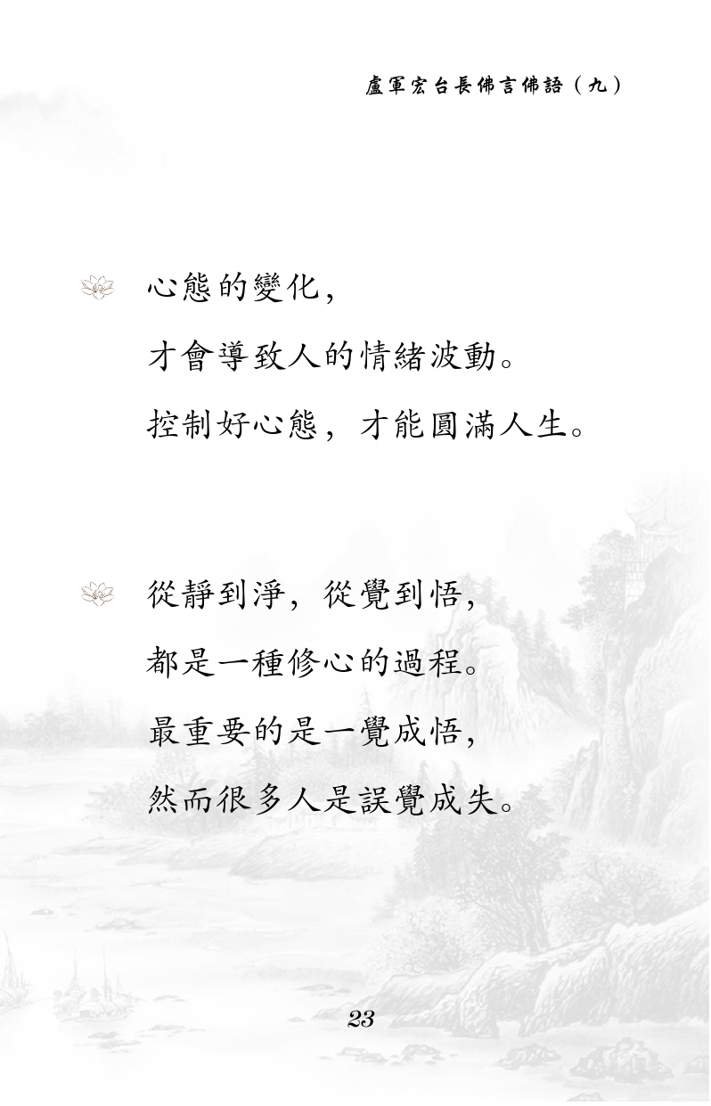 不限会员 心态的变化, 才会导致人的情绪波动。 控制好心态,才能圆满人生。 从静到净,从觉到悟, 都是一种修心的过程。 最重要的是一觉成悟, 然而很多人是误觉成失。 |佛言佛语(九)
