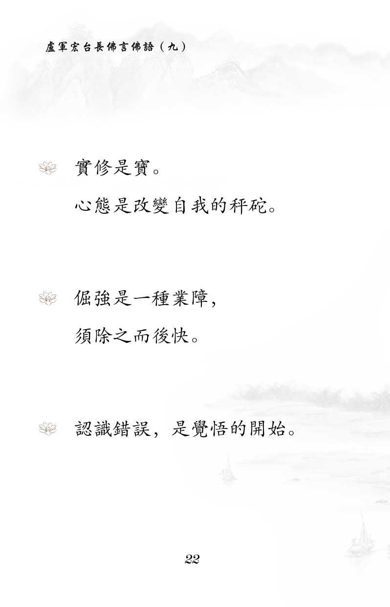 不限会员 实修是宝。 心态是改变自我的秤砣。 倔强是一种业障, 须除之而后快。 认识错误,是觉悟的开始。 |佛言佛语(九)